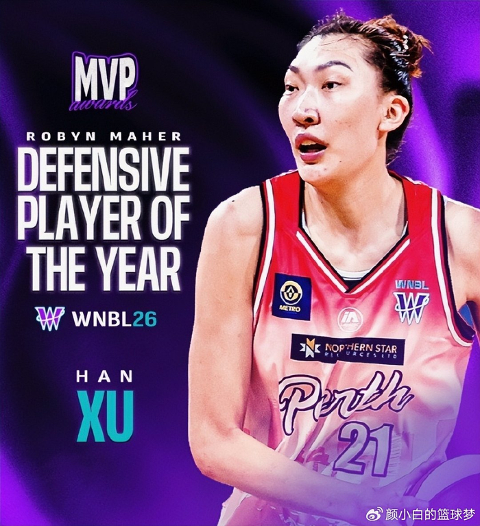 韩旭在WNBL拿到了最佳防守球员与最佳二阵,总决赛第二场她拿到18分9篮板6助攻4盖帽的不俗数据,本赛季场均15.5分6.8篮板1.4助攻1抢断1.93盖帽1.63个三分球。