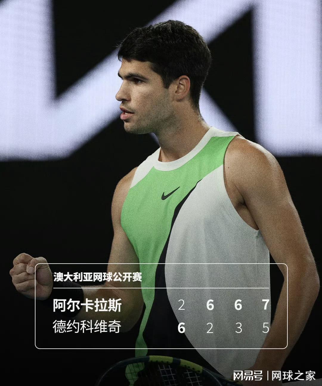 后三盘比赛,阿尔卡拉斯仅让德约拿到10局。这种统治力在面对24大满贯冠军得主时显得尤为惊人。第四盘,德约曾握有宝贵的破发点,那是他挽救比赛、将悬念拖入抢七的最后机会。然而,阿尔卡拉斯用一记标志性的正手直线制胜球,将危机的火种彻底掐灭,也亲手终结了德约在澳网决赛不败的神话。